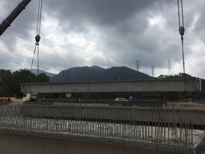 工程概况:本项目西起水官高速公路横坪立交,东至聚龙路(规划外环高速公路田头互通立交),全长约22.2KM,其中水官横坪立交至中山路段为现状新横坪公路改造段,主线完全利用现状,双向六车道,长约8.5KM,中山路段至外环高速公路段为新建段,主线双向八车道(规划断面),长约13.7KM,南坪三期全线按照城市快速路标准建设。油气管保护桥跨径布置为:1*30m简支结构箱梁,30m箱梁共计:11片。