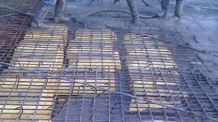 现浇空心板是一种由轻质材料组合单元填充的预应力混凝土现浇空心板,属于一般建筑物构造领域。它由轻质材料组合单元、上层钢筋、下层钢筋、预应力筋、暗梁钢筋和混凝土构成,其中轻质材料组合单元由轻质管材和连接钢筋构成。此种现浇板兼顾预应力结构与空心板结构的优点,空心率较高,既适合于单向板,又适合于双向板,布管、铺筋非常方便,还实现混凝土一次性浇筑成型。此种现浇板跨度大、重量轻、隔音、隔热效果好,结构的可靠性、抗震性、抗裂性也较好。